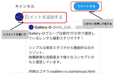 ③下記画像の手順に従ってコメント付きリポスト(旧リツイート)をお願い致します。
